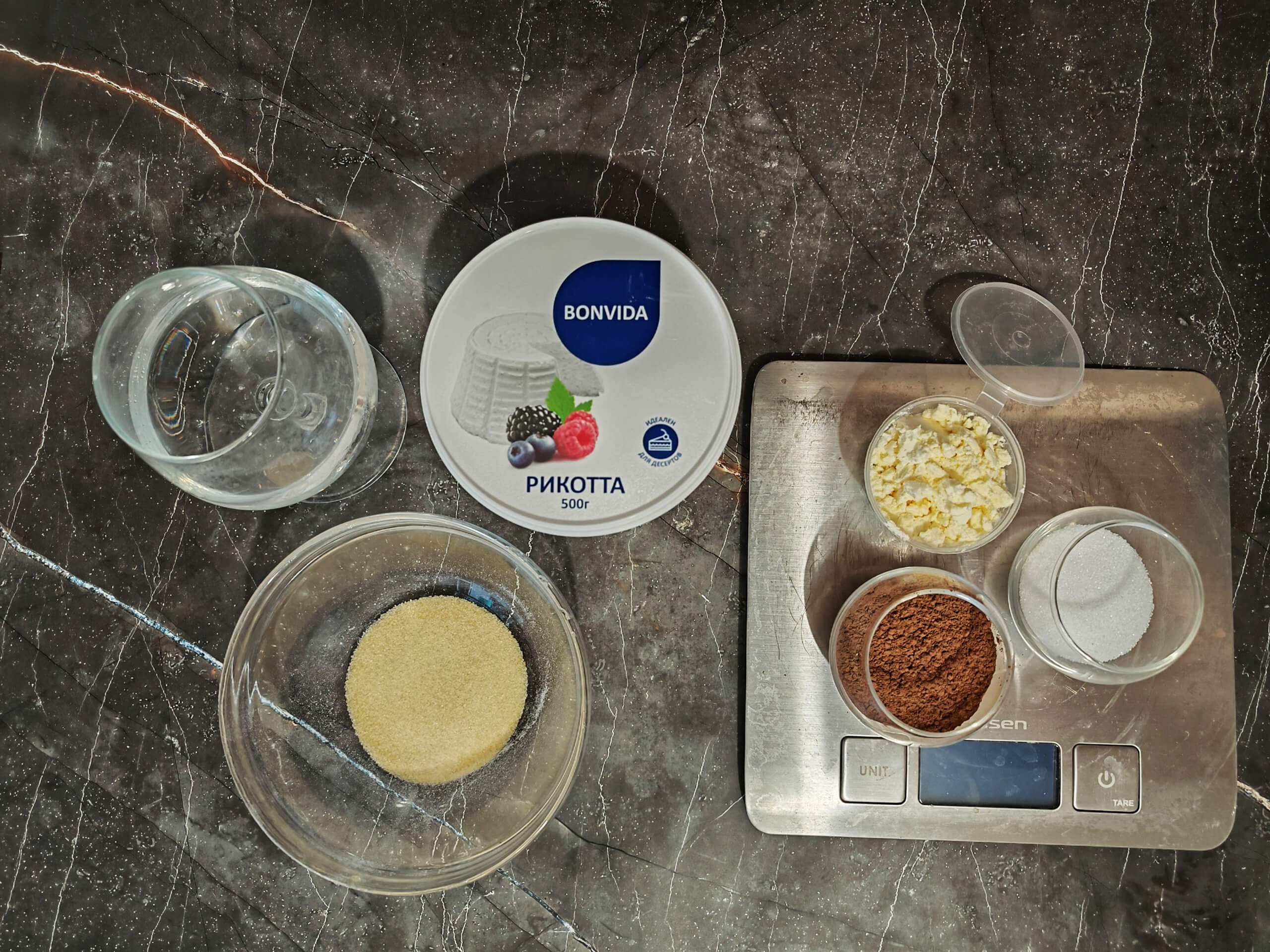 Для приготовления потребуются несколько ингредиентов: рикотта, желатин, какао, яичный белок, вода, сахарозаменитель и соль. При желании можно дополнить декором: пудрой из эритрита, посыпкой, топпингом и др. А также использовать пищевой краситель. Для удобства можно использовать кулинарные приборы из списка ниже.